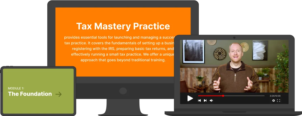 The Tax Practice Mastery Course provides essential tools for launching and managing a successful tax practice. It covers the fundamentals of setting up a business, registering with the IRS, preparing basic tax returns, and effectively running a small tax practice. We offer a unique approach that goes beyond traditional training.